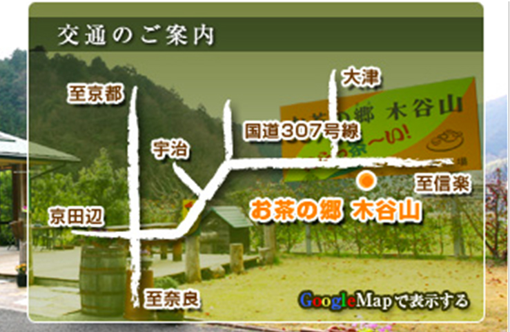 京都・大津・枚方からは約30分緑茶街道 国道307号線沿い「いらっ茶~い」の看板が目印です。